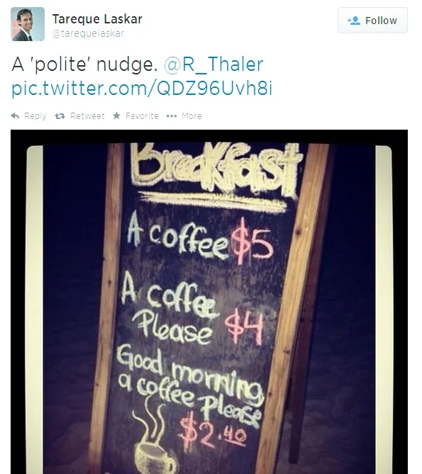 4. Behavioral Economics: "We are being manipulated and nudged all the time–not only by media or businesses, but also by each other. The process is inevitable. Criticising nudging is like criticising electromagnetism or gravity – the best we can do is be aware of the forces at work, to understand them and to make people widely aware of them." The Behavioral Economics Guide 2014